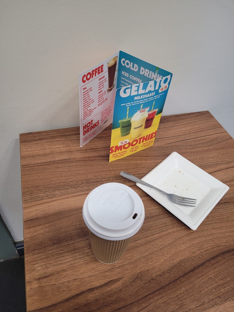 In addition to coffee, the menu features several smoothie choices such as Berry Go Round, Passion Shoot, and Kale Kick, providing refreshing non-coffee alternatives. For those preferring something sweet, homemade cakes are available under the desserts selection. Ice cream is also highlighted as a popular offering.